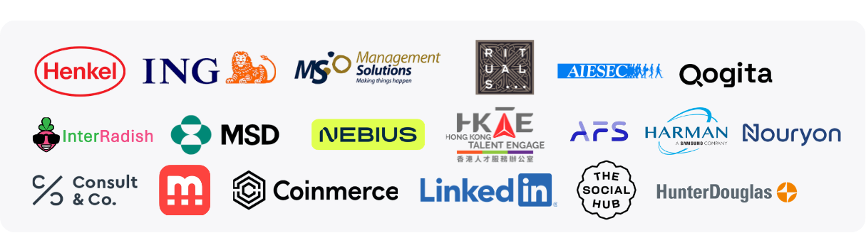 Participating organisations: ING, Nebius, Consult & Co, Henkel, Management Solutions, Rituals, InterRadish, MSD, Hong Kong Talent Engage, MagnetMe, Coinmerce, LinkedIn, Aiesec, The Social Hub, AFS, Qogita, Harman, Nouryon, Hunter Douglas